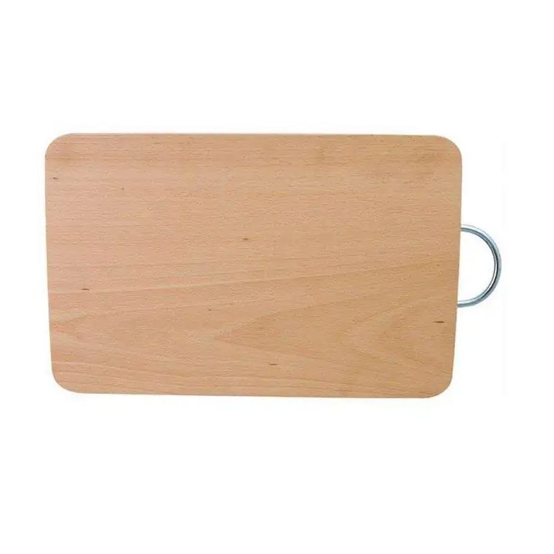 Deska do krojenia kwadratowa z uchwytem metalowym.