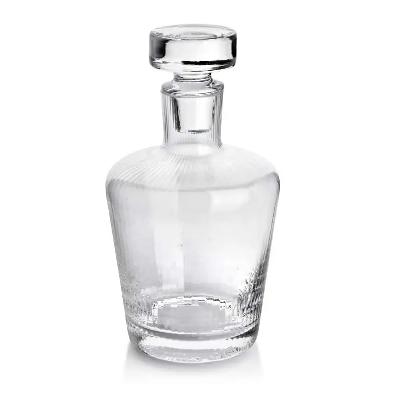 Ryflowana karafka wykonana ze szkła z korkiem. Świetne rozwiązanie na podanie wina, soku czy wody.